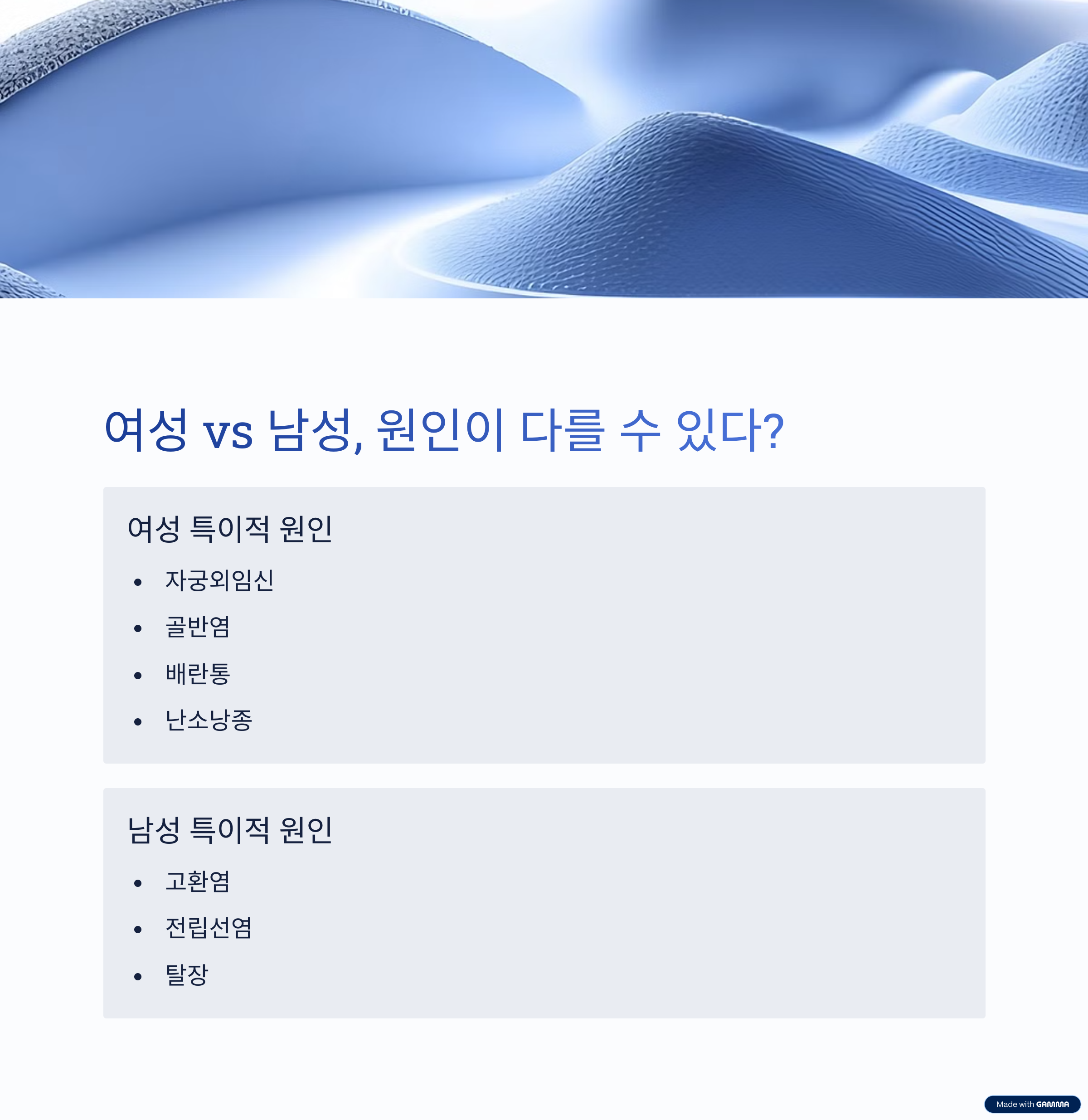 "성별에 따라 통증의 원인이 달라질 수 있으니 반드시 구분해서 접근해야 합니다" 🚻
