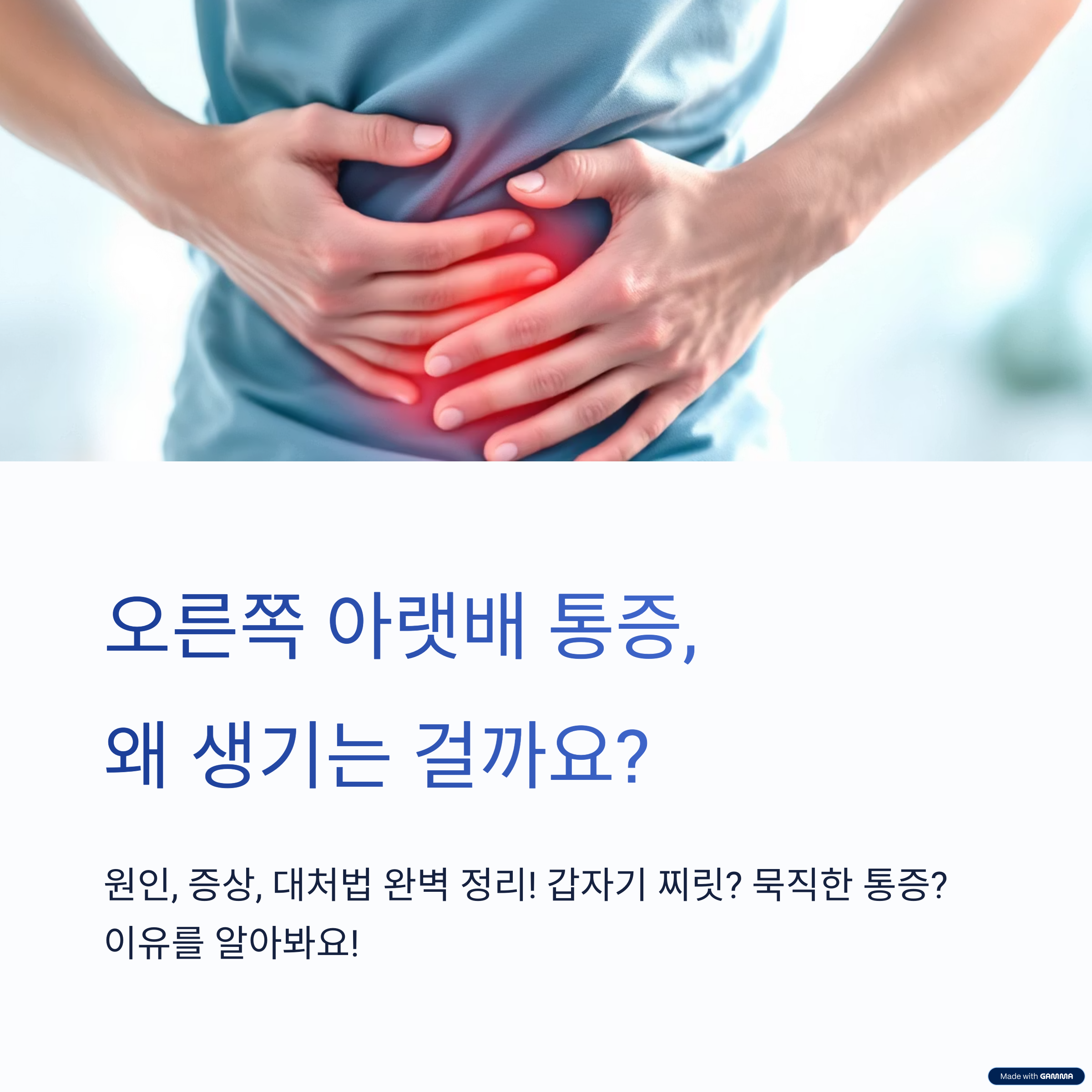 오른쪽 아랫배 통증이 갑자기 발생했는지, 오래 지속되고 있는지가 원인을 판단하는 중요한 기준입니다.